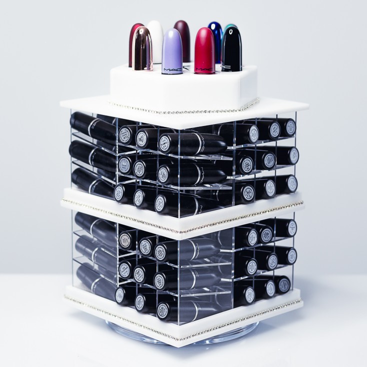 From glossy to matte, you can arrange your lipsticks by finish, colour or by brand. Lay out your lipsticks in a way that you can find your favourite shade in a jiffy or in a single glance. Forget about being late in the mornings because you can't find the lipstick that you'd like to wear. The other great thing about this tower is that you don't have to waste money buying two of the same lipstick simply because you don’t have an overview or control of your collection. Thanks to this practical and beautiful accessory, this won't happen again because you can immediately see what you have.